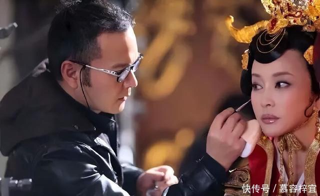 两张图片,一张是知名化妆师毛戈平为刘晓庆化妆,另一张则是名为《武则天传奇》的剧本。